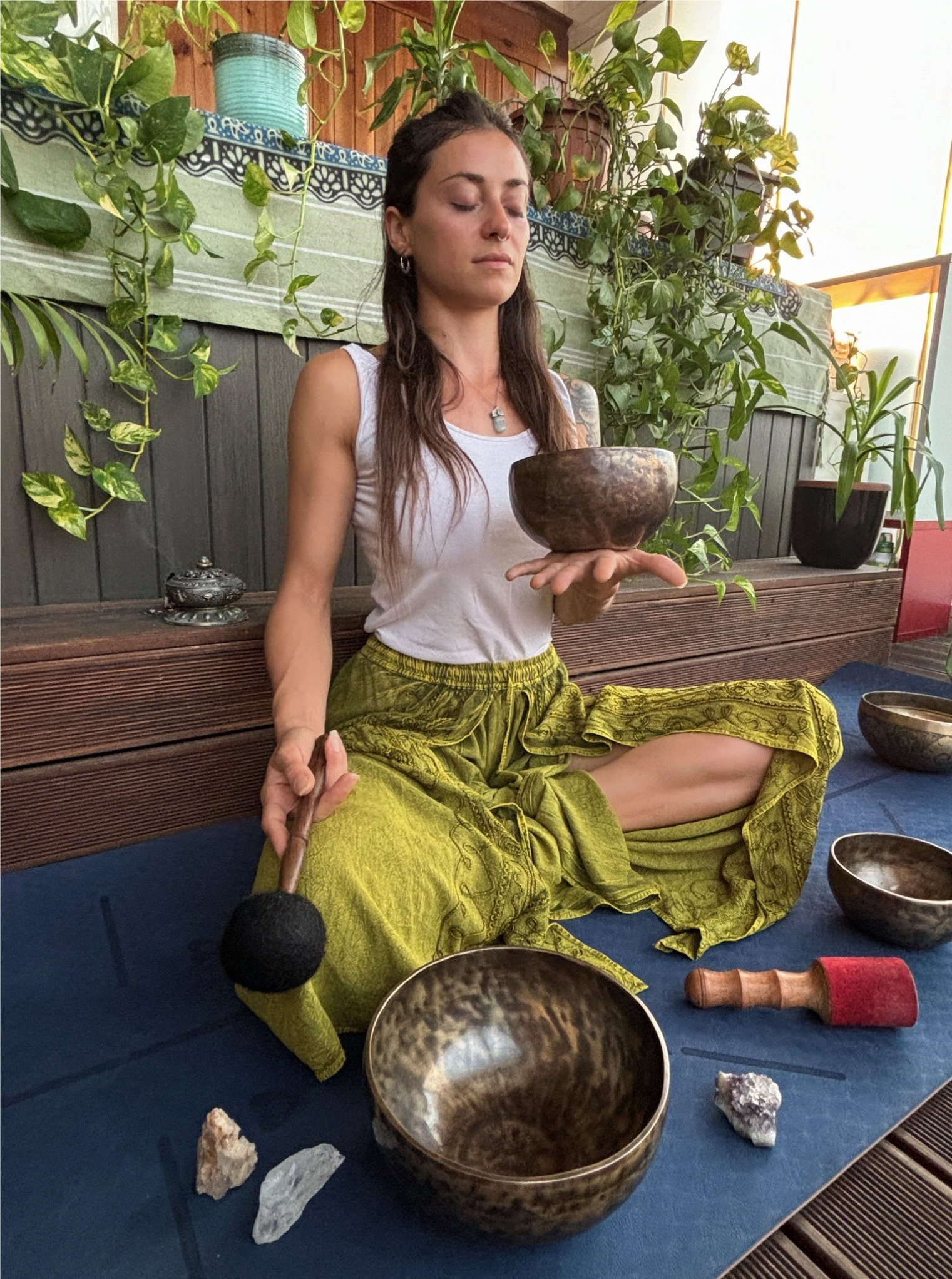Mi sono formata come insegnante in India, a Rishikesh, dove ho approfondito il valore della presenza, della respirazione e del silenzio.