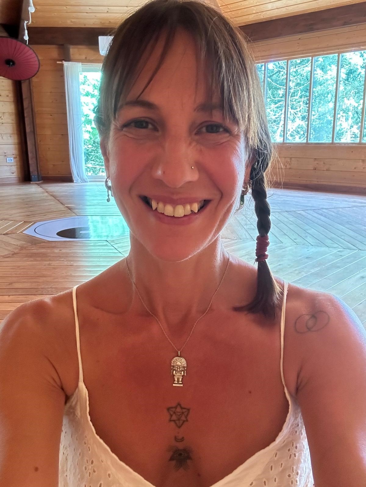 Sono insegnante di Azul Conscious Movement, una pratica corporea che aiuta a rilasciare tensioni fisiche ed emotive e risveglia la forza vitale .